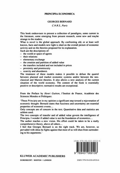 It has already been said, if not written, that progress in knowledge in any domain consists mainly of expressing things that are well known in a different and, if possible, new way. That is the purpose of this book. In his solitary effort an author is entirely and solely responsible for what he writes, including any mistakes or errors in the text. This is the case here as this book is not a result of a pluridisciplinary effort. It seems to the author that while reflection can be and sometimes is fruitful in a team, the task of bringing to light new ideas or to shed new light on old ones is mostly a solitary exercise. There are many illustrious examples to which, of course, the author does not compare himself: Quesnay, Rousseau, A. Smith, D. Ricardo, Fourier, Walras, Keynes, Freud and many others. The text contains many analogies between economics and phys ics. This last 'exact' science has adopted two paradigms in this century: disequilibria are essential and normal states; the dynamics of events, the temporal evolution of states, is the explanation of Nature. One could also add a third, the fundamental principles of uncertainty and randomness. The deterministic models that were current at the end of the last century were, on the contrary, attached to states of equilibrium and were invariant with respect to time as they assumed perfect causa lity, i.e. a perfect knowledge of the future.