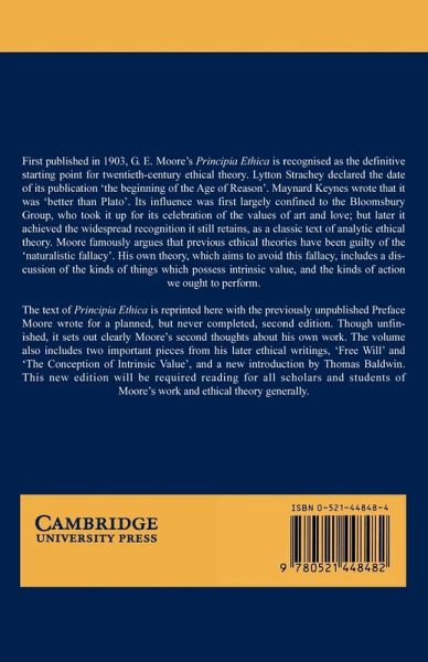 First published in 1903, G. E. Moore's Principia Ethica is recognized as the definitive starting point for twentieth-century ethical theory.
