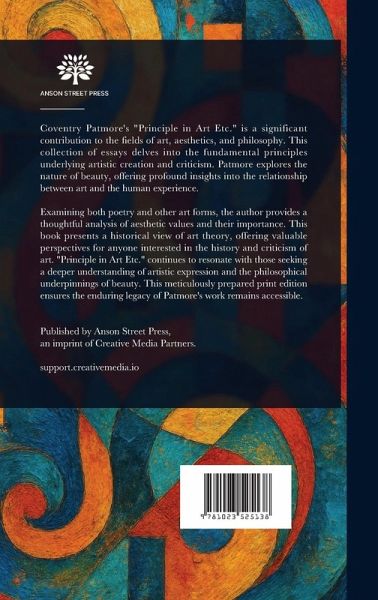 Coventry Patmore's "Principle in Art Etc." is a significant contribution to the fields of art, aesthetics, and philosophy. This collection of essays delves into the fundamental principles underlying artistic creation and criticism. Patmore explores the nature of beauty, offering profound insights into the relationship between art and the human experience. Examining both poetry and other art forms, the author provides a thoughtful analysis of aesthetic values and their importance. This book presents a historical view of art theory, offering valuable perspectives for anyone interested in the history and criticism of art. "Principle in Art Etc." continues to resonate with those seeking a deeper understanding of artistic expression and the philosophical underpinnings of beauty. This meticulously prepared print edition ensures the enduring legacy of Patmore's work remains accessible. This work has been selected by scholars as being culturally important, and is part of the knowledge base of civilization as we know it. This work is in the public domain in the United States of America, and possibly other nations. Within the United States, you may freely copy and distribute this work, as no entity (individual or corporate) has a copyright on the body of the work. Scholars believe, and we concur, that this work is important enough to be preserved, reproduced, and made generally available to the public. We appreciate your support of the preservation process, and thank you for being an important part of keeping this knowledge alive and relevant.