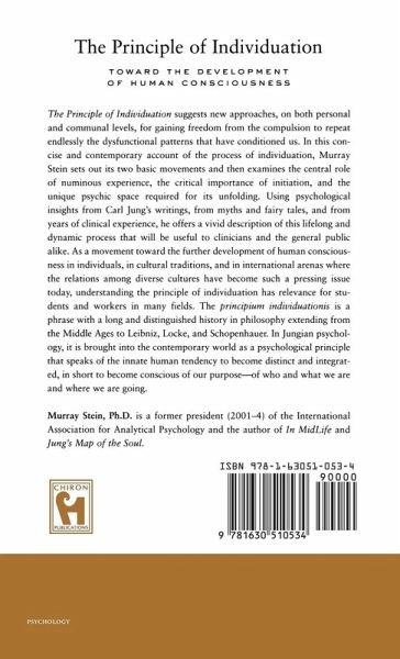 The Principle of Individuation suggests new approaches, on both personal and communal levels, for gaining freedom from the compulsion to repeat endlessly the dysfunctional patterns that have conditioned us. In this concise and contemporary account of the process of individuation, Murray Stein sets out its two basic movements and then examines the central role of numinous experience, the critical importance of initiation, and the unique psychic space required for its unfolding. Using psychological insights from Carl Jung’s writings, from myths and fairytales, and from years of clinical experience, he offers a vivid description of this lifelong and dynamic process that will be useful to clinicians and the general public alike. Stein suggests new approaches—on both personal and communal levels—for gaining freedom from the compulsion to repeat endlessly the dysfunctional patterns that have conditioned us. In this concise and contemporary account of the process of individuation, he sets out its two basic movements and then examines the central role of numinous experience, the critical importance of initiation, and the unique psychic space required for its unfolding. Using psychological insights from C. G. Jung's writings, from myths and fairytales, and from years of clinical experience, Stein offers a vivid description of this lifelong and dynamic process that will be useful to clinicians and the general public alike. As a movement toward the further development of human consciousness in individuals, in cultural traditions, and in international arenas where the relations among diverse cultures have become such a pressing issue today, understanding the principle of individuation has relevance for students and workers in many fields. The principium individuation is a phrase with a long and distinguished history in philosophy, extending from the Middle Ages to Leibniz, Locke, and Schopenhauer. In Jungian psychology, it is brought into the contemporary world as a psychological principle that speaks of the innate human tendency to become distinct and integrated-to become conscious of our purpose, who and what we are, and where we are going. Murray Stein, Ph.D. is a supervising training analyst and former president of The International School of Analytical Psychology in Zurich, Switzerland (ISAP Zurich). His most recent books include Outside Inside and All Around, Minding the Self and The Principle of Individuation. From 2001 to 2004 he was president of the International Association for Analytical Psychology. He lectures internationally on topics related to Analytical Psychology and its applications in the contemporary world. He is publisher emeritus of Chiron Publications and is the focus of many Asheville Jung Center online seminars.