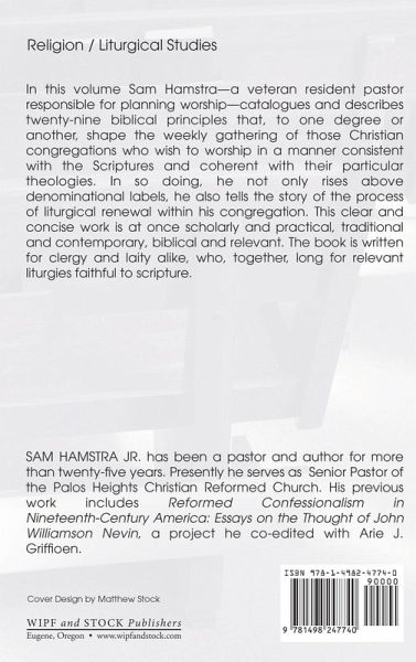 In this volume Sam Hamstra--a veteran resident pastor responsible for planning worship--catalogues and describes twenty-nine biblical principles that, to one degree or another, shape the weekly gathering of those Christian congregations who wish to worship in a manner consistent with the Scriptures and coherent with their particular theologies. In so doing, he not only rises above denominational labels, he also tells the story of the process of liturgical renewal within his congregation. This clear and concise work is at once scholarly and practical, traditional and contemporary, biblical and relevant. The book is written for clergy and laity alike, who, together, long for relevant liturgies faithful to Scripture.
