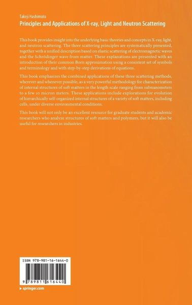 This book provides insight into the underlying basic theories and concepts in X-ray, light, and neutron scattering. The three scattering principles are systematically presented, together with a unified description based on elastic scattering of electromagnetic waves and the Schrödinger wave from matter. These explanations are presented with an introduction of their common Born approximation using a consistent set of symbols and terminology and with step-by-step derivations of equations.