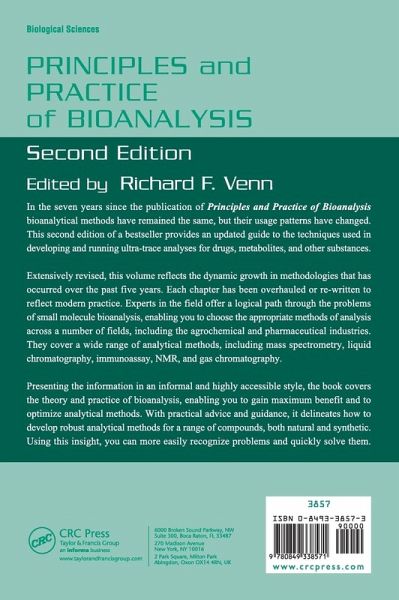 Principles and Practice of Bioanalysis: Second Edition provides an updated guide to the techniques currently used in developing and running ultra-trace analyses for drugs, metabolites and other substances. Extensively revised, this volume reflects the dynamic growth in methodologies that has occurred over the past five years. Experts in the field offer a logical path through the problems of small molecule bioanalysis, enabling researchers to choose the appropriate methods of analysis across a number of fields, including the agrochemical and pharmaceutical industries. Scientists and graduate students in biology, biochemistry, and chemistry will also find this to be a valuable reference.