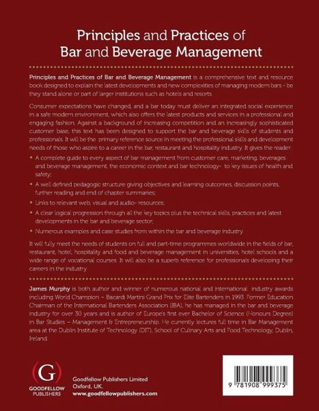 A comprehensive text and resource book designed to explain the latest developments in and new complexities of managing modern bars- be they stand alone or part of larger institutions such as hotels and resorts.