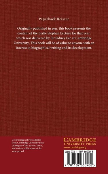 Originally published in 1911, this book presents the content of the Leslie Stephen Lecture for that year, which was delivered by Sir Sidney Lee at Cambridge University. This book will be of value to anyone with an interest in biographical writing and its development.