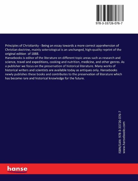 Principles of Christianity - Being an essay towards a more correct apprehension of Christian doctrine, mainly soteriological is an unchanged, high-quality reprint of the original edition of 1888.