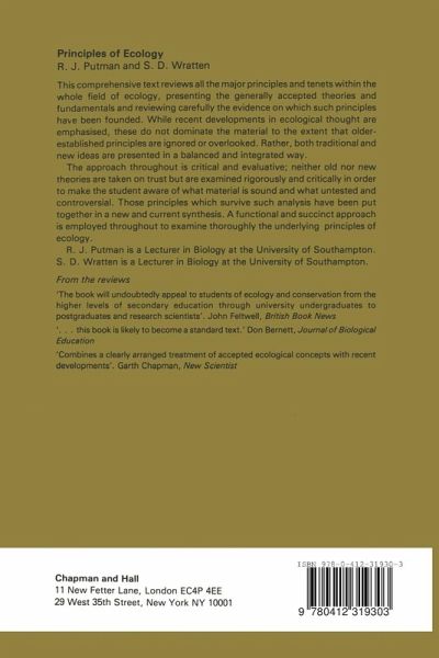 1: The Organism and its Environment.- 1.1 The organism and its abiotic environment: limits to tolerance.- 1.2 Interactions between environmental variables.- 1.3 Macro-environment and micro-environment.- 1.4 Adjustment of tolerance limits.- 1.5 Homeostasis: avoidance of the problem.- 1.6 Behavioural mechanisms for homeostasis.- 1.7 Adaptive suites.- 1.8 Organism and abiota: a two-way interaction.- 2: The Ecological Community.- 2.1 Introduction.- 2.2 Communities and ecosystems.- 2.3 Biotic relationships.- 2.4 The organism in the community.- 2.5 The community level of organisation.- 2.6 Tropho-dynamic analyses.- 2.7 Community structure.- 2.8 Analyses of food web design.- 2.9 Subcompartments in community structure.- 2.10 Common denominators of community design.- 2.11 Species-abundance relationships.- 2.12 Species associations.- 2.13 Niche relationships and design rules.- 2.14 The structure of particular communities.- 2.15 Community flux.- 3: Community Dynamics.- 3.1 Introduction.- 3.2 The community as a system of energy transformations.- 3.3 Energy relationships of individuals.- 3.4 Energy relationships in the community.- 3.5 Energy flow within the community: the tropho-dynamic approach.- 3.6 Limitations of energy analysis.- 3.7 The flow of nutrients within communities.- 3.8 The importance of the decomposers.- 4: Temporal Change in Community Structure and Function.- 4.1 Introduction.- 4.2 Short-term cycles in community structure.- 4.3 Shifts in community structure: colonisation and extinction.- 4.4 Succession.- 4.5 Characteristics of succession.- 4.6 The mechanics of succession.- 4.7 What stops the successional process?.- 4.8 Climax communities.- 4.9 Succession as a necessary mathematical consequence.- 5: The Concept of the Niche.- 5.1 Introduction and definition of niche.-5.2 Parameters of the niche.- 5.3 Factors affecting the niche and its parameters.- 5.4 Niche separation.- 5.5 Niche overlap.- 5.6 Measures of niche width, separation and overlap.- 5.7 Niche relationships and community structure.- 5.8 Parallel niches.- 6: Interspecific Competition and Community Structure.- 6.1 Introduction and definitions of competition.- 6.2 Interspecific competition.- 6.3 The mechanics of competition.- 6.4 Niche overlap and competition.- 6.5 The effects of interspecific competition within the community: exclusion and coexistence.- 6.6 Diffuse competition and indirect competitive effects.- 6.7 Competition as a selection pressure promoting change.- 6.8 Niche shifts and evolutionary change due to competition.- 6.9 Interspecific competition in natural systems.- 7: Population Structure and Analysis.- 7.1 What is population ecology?.- 7.2 Theoretical population growth.- 7.3 The analytic (life table) approach.- 7.4 Simulation of population events.- 7.5 Towards a general population theory.- 8: Competition and Population Stability.- 8.1 Introduction: inter and intra-specific competition and population stability.- 8.2 Regulation in vertebrate populations.- 8.3 Population cycles in vertebrates.- 8.4 Population cycles in invertebrates.- 9: Predators, Parasitoids and Population Stability.- 9.1 Why study predators and parasitoids?.- 9.2 Analytical models and the components of prédation.- 9.3 Predator development and accumulation.- 9.4 A theoretical basis for biological control.- 9.5 Polyphagous predators and analytical models.- 9.6 Field studies of the role of polyphagous predators.- 9.7 The effects of prédation on prey productivity and community structure.- 10: Evolution and Adaptation.- 10.1 Evolution and ecology.- 10.2 Adaptation.- 10.3 Bionomic strategies.-10.4 Implications of r- and K-selection.- 10.5 Adaptiveness of foraging strategy.- 10.6 Optimal foraging.- 10.7 Reproductive strategy.- 10.8 Adaptiveness of social group.- 10.9 Optimality and evolutionarily stable strategies.- 10.10 The evolution of stable strategies.- 11: Coevolution.- 11.1 Insect-plant interactions.- 11.2 Larger herbivores.- 11.3 Interaction of plant-herbivore populations.- 11.4 Coevolution to mutualism.- 11.5 Coadapted systems.- 12: Species Diversity.- 12.1 Diversity as a descriptor of ecological communities.- 12.2 Measures of diversity.- 12.3 Resolution of chaos in diversity indices.- 12.4 The S component of diversity: why are there so many kinds of organisms?.- 12.5 Colonisation, extinction and island biogeography.- 12.6 Saturation point.- 12.7 Equitability.- 12.8 Factors promoting species diversity.- 12.9 Theories of diversity.- 13: Stability.- 13.1 Definitions.- 13.2 Stability of single species populations.- 13.3 Stability of two or three species systems.- 13.4 Community stability.- 13.5 Diversity and stability.- 13.6 May's Paradox.- 13.7 Stability and food web design.- 13.8 The energetics of stable systems.- 13.9 Causes for stability.- References.- Acknowledgements.