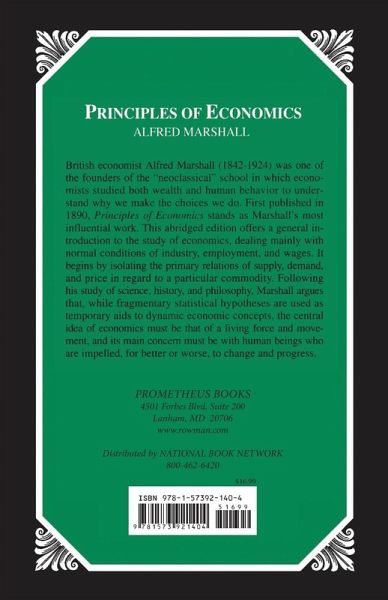 British economist Alfred Marshall (1842-1924) was one of the founders of the "neoclassical" school in which economists studied both wealth and human behavior to understand why we make the choices we do. First published in 1890, Principles of Economics stands as Marshall's most influential work. This abridged edition offers a general introduction to the study of economics, dealing mainly with normal conditions of industry, employment, and wages. It begins by isolating the primary relations of supply, demand, and price in regard to a particular commodity. Following his study of science, history, and philosophy, Marshall argues that, while fragmentary statistical hypotheses are used as temporary aids to dynamic economic concepts, the central idea of economics must be that of a living force and movement, and its main concern must be with human beings who are impelled, for better or worse, to change and progress.