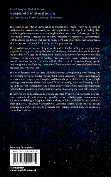 This book describes how the three subfields known as strong lensing, weak lensing, and microlensing have grown independently but become increasingly intertwined. Drawing on their research experience, Congdon and Keeton begin with the basic physics of light bending, then present the mathematical foundations of gravitational lensing, building up to current research topics in a clear and systematic way. Relevant background material from physics and mathematics is included, making the book self-contained.