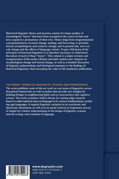 Historical linguistic theory and practice consist of a large number of chronological "layers" that have been accepted in the course of time and have acquired a permanence of their own. These range from neogrammarian conceptualizations of sound change, analogy, and borrowing, to prosodic, lexical, morphological, and syntactic change, and to present-day views on rule change and the effects of language contact. To get a full grasp of the principles of historical linguistics it is therefore necessary to understand the nature of each of these "layers". This book is a major revision and reorganization of the earlier editions and adds entirely new chapters on morphological change and lexical change, as well as a detailed discussion of linguistic palaeontology and ideological responses to the findings of historical linguistics to this landmark publication.
