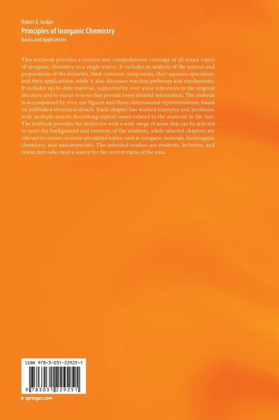 This textbook provides a current and comprehensive coverage of all major topics of inorganic chemistry in a single source. It includes an analysis of the sources and preparations of the elements, their common compounds, their aqueous speciation, and their applications, while it also discusses reaction pathways and mechanisms. It includes up-to-date material, supported by over 4000 references to the original literature and to recent reviews that provide more detailed information. The material is accompanied by over 250 figures and three-dimensional representations, based on published structural details. Each chapter has worked examples and problems, with multiple inserts describing topical issues related to the material in the text. The textbook provides the instructor with a wide range of areas that can be selected to meet the background and interests of the students, while selected chapters are relevant to courses on more specialized topics, such as inorganic materials, bioinorganic chemistry, and nanomaterials. The intended readers are students, lecturers, and researchers who need a source for the current status of the area.