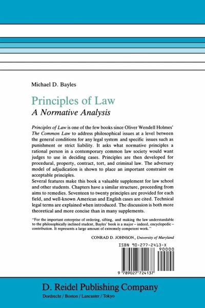 `Principles of Law is one of the few books since Oliver Wendell Holmes' The Common Law to address philosophical issues at a level between the general conditions for any legal system and specific issues such as punishment or strict liability. It asks what normative principles a rational person in a contemporary common l aw society would want judges to use in deciding cases. Principles are then developed for procedural, property, contract, tort, and criminal law. The adversary model of adjudication is shown to place an important constraint on acceptable principles. ... Several features make this book a valuablesupplement for law school and other students. Chapters have a similar structure, proceeding from aims to remedies. Seventeen to 20 principles are provided for each field, and well-known American and English cases are cited. Technical legal terms are explained when introduced. The discussion is both more theoretical and concise than in many supplements.
