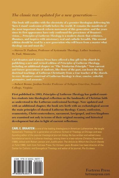Carl E. Braaten is a leading theologian in American Lutheranism. He taught Systematic Theology for a generation at Lutheran School of Theology at Chicago and together with Rober W. Jenson founded the Center for Catholic and Evangelical Theology and co-edited the journal Pro Ecclesia.