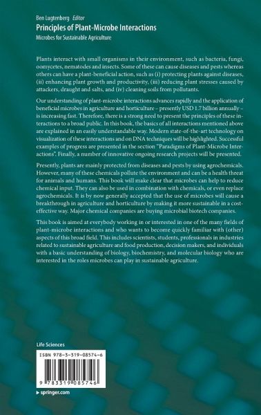 1. Introduction to Plant-Microbe Interactions.- Part I. Introductory Chapters.- 2. The Importance of Microbiology in Sustainable Agriculture.- 3. Life of Microbes in the Rhizosphere.- 4. Life of Microbes on Aerial Plant Parts.- 5. Life of Microbes Inside the Plant.- 6. Microbial Cell Surfaces and Secretion Systems.- 7. Microbial Biofilms and Quorum Sensing.- 8. Bacterial Volatiles as Airborne Signals for Plants and Bacteria.- Part II. Phytopathogens and Pest Insects.- 9. Phytopathogenic Bacteria.- 10. Plant Pathogenic Fungi and Oomycetes.- 11. Phytopathogenic Nematodes.- 12. Herbivorous Insects - a Threat for Crop Production.- 13. Phytopathogenic Viruses.- 14. Induced Disease Resistance.- 15. Apologies to the Planet - Can we Restore the Damage?.- 16. Will the Public ever Accept Genetically Engineered Plants?.- Part III. Control of Plant Diseases and Pests using Beneficial Microbes.- 17. Microbial Control of Phytopathogenic Nematodes.- 18. Microbial Control of Root-Pathogenic Fungi and Oomycetes.- 19. Control of Insect Pests by Entomopathogenic Nematodes.- 20. Bacillus thuringiensis-based Products for Insect Pest Control.- 21. Post Harvest Control.- Part IV. Plant Growth Promotion by Microbes.- 22. The Nitrogen Cycle.- 23. Biological Nitrogen Fixation.- 24. Phosphate Mobilisation by Soil Microorganisms.- 25. Arbuscular Mycorrhizas: the Lives of Beneficial Fungi and their Plant Host.- 26. Plant Hormones Produced by Microbes.- 27. Stress Control and ACC Deaminase.- 28. Plant-Microbe Interactions and Water Management in Arid and Saline Soils.- 29. Rhizoremediation.- Part V. Important Technologies.- 30. Microbial Communities in the Rhizosphere Analyzed by Cultivation-independent; DNA-based Methods.- 31. Visualization of Plant-Microbe Interactions.- Part VI. Products for Plant Growth-promotion and Disease Suppression.- 32. Commercialisation of Microbes: Present Situation and Future Prospects.- 33. Commercialization of Microbes: Manufacturing, Inoculation, Best Practice for Objective Field Testing, and Registration.- 34. Towards a New Generation of Commercial Microbial Disease Control and Plant -Growth Promotion Products.- 35. Important Organizations and Companies.- Part VII. Paradigms in Plant-Microbe Interactions.- 36. Trichoderma: a Multi-Purpose Tool for Integrated Pest Management.- 37. Agrobacterium, the Genetic Engineer.- 38. Take-All Decline and Beneficial Pseudomonads.- 39. The Oomycete Phytophthora infestans, the Irish Potato Famine Pathogen.- 40. Bacillus, a Plant-Beneficial Bacterium; Rainer Borriss.- 41. Soybean Production in the Americas.- Part VIII. Future Prospects and Dreams.- 42. Exploring the Feasibility of Transferring Nitrogen Fixation to Cereal Crops.- 43. The Minimal Rhizosphere Microbiome.- 44. The Edible Plant Microbiome: Importance and Health Issues.- 45. From Nodulation to Antibiotics.