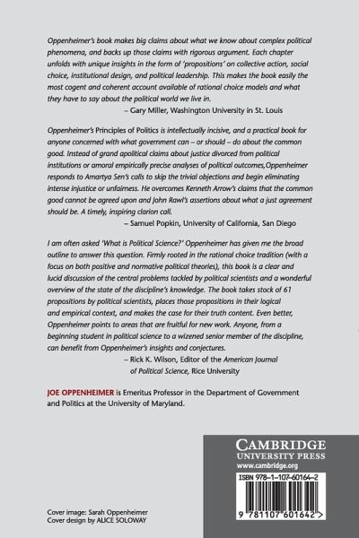 'Oppenheimer's book makes big claims about what we know about complex political phenomena, and backs those claims up with rigorous argument. Each chapter unfolds with unique insights in the form of 'propositions' on collective action, social choice, institutional design, and political leadership. This makes the book easily the most cogent and coherent account available of rational choice models and what they have to say about the political world we live in.' Gary Miller, Washington University, St Louis