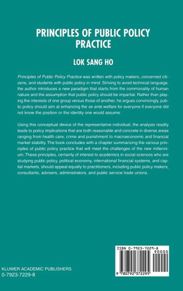 Using this conceptual device of the representative individual, the analysis readily leads to policy implications that are both reasonable and concrete in diverse areas ranging from health care, crime and punishment to macroeconomic and financial market stability. The book concludes with a chapter summarizing the various principles of public policy practice that will meet the challenges of the new millennium. These principles, certainly of interest to academics in social sciences who are studying public policy, political economy, international financial systems, and capital markets, should appeal equally to practitioners, including public policy makers, consultants, advisers, administrators, and public service trade unions.
