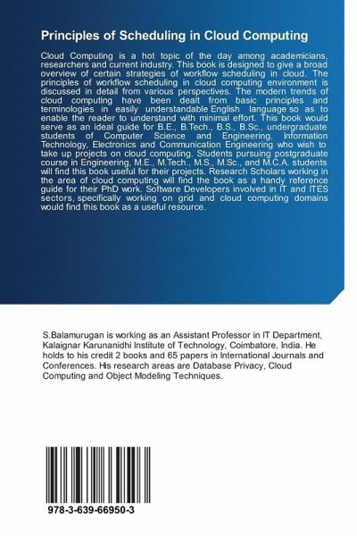 Cloud Computing is a hot topic of the day among academicians, researchers and current industry. This book is designed to give a broad overview of certain strategies of workflow scheduling in cloud. The principles of workflow scheduling in cloud computing environment is discussed in detail from various perspectives. The modern trends of cloud computing have been dealt from basic principles and terminologies in easily understandable English language so as to enable the reader to understand with minimal effort. This book would serve as an ideal guide for B.E., B.Tech., B.S., B.Sc., undergraduate students of Computer Science and Engineering, Information Technology, Electronics and Communication Engineering who wish to take up projects on cloud computing. Students pursuing postgraduate course in Engineering, M.E., M.Tech., M.S., M.Sc., and M.C.A. students will find this book useful for their projects. Research Scholars working in the area of cloud computing will find the book as a handy reference guide for their PhD work. Software Developers involved in IT and ITES sectors, specifically working on grid and cloud computing domains would find this book as a useful resource.