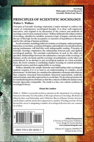 Principles of Scientific Sociology represents a major attempt to redirect the course of contemporary sociological thought. It is clear, well-organized, innovative, and original in its discussion of the context and methods of sociology conceived as a natural science. Wallace delineates the subject matter of sociology, classifies its variables, presents a logic of inquiry, and advocates the use of this logic for the acceptance or rejection of hypotheses or theories and for the solving of human problems.