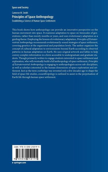 This book shows how anthropology can provide an innovative perspective on the human movement into space. It examines adaptation to space on timescales of generations, rather than merely months or years, and uses evolutionary adaptation as a guiding theme. Employing the lessons of evolutionary adaptation, Principles of Extraterrestrial Anthropology recommends evolutionarily-sound strategies of space settlement, covering genetics at the organismal and population levels. The author organizes the concept of cultural adaptation to environments beyond Earth according to observed patterns in human adaptation on Earth. He uses original artwork and tables to help convey complex information in a form accessible to undergraduate and graduate students. Though primarily written to engage students interested in space settlement and exploration, who will eventually build a full anthropology of space settlement, Principles of Extraterrestrial Anthropology is engaging to anthropologists across sub-disciplines, as well as scholars interested in the human dimensions of space exploration and settlement. Just as the term exobiology was invented only a few decades ago to shape the field of space life studies, exoanthropology is outlined to assist in the perpetuation of Earth life through human space settlement.