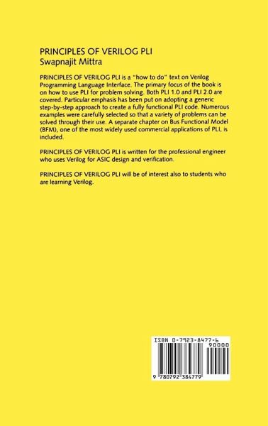 Principles of Verilog PLI is a `how to do' text on Verilog Programming Language Interface. The primary focus of the book is on how to use PLI for problem solving. Both PLI 1.0 and PLI 2.0 are covered. Particular emphasis has been put on adopting a generic step-by-step approach to create a fully functional PLI code. Numerous examples were carefully selected so that a variety of problems can be solved through ther use. A separate chapter on Bus Functional Model (BFM), one of the most widely used commercial applications of PLI, is included. Principles of Verilog PLI is written for the professional engineer who uses Verilog for ASIC design and verification. Principles of Verilog PLI will be also of interest to students who are learning Verilog.