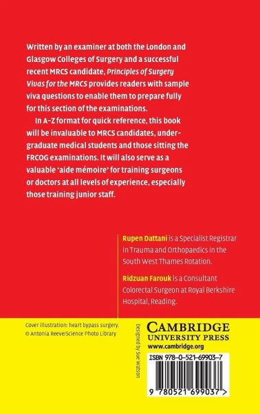 Written for the Principles of Surgery viva of the MRCS exam by an examiner at both the London and Glasgow Colleges of Surgery and a successful recent MRCS candidate, Principles of Surgery Vivas for the MRCS provides the reader with sample viva questions to enable them to prepare fully for this section of the examinations. In A-Z format for quick reference, this book will be invaluable to MRCS candidates, undergraduate medical students and those sitting the FRCOG examinations. It will also serve as a valuable 'aide memoire' for the training surgeon or doctor at all levels of experience, especially those training junior staff.
