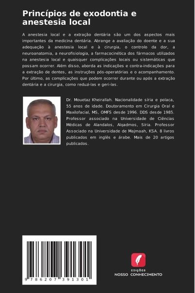 A anestesia local e a extração dentária são um dos aspectos mais importantes da medicina dentária. Abrange a avaliação do doente e a sua adequação à anestesia local e à cirurgia, o controlo da dor, a neuroanatomia, a neurofisiologia, a farmacocinética dos fármacos utilizados na anestesia local e quaisquer complicações locais ou sistemáticas que possam ocorrer. Além disso, aborda as indicações e contra-indicações para a extração de dentes, as instruções pós-operatórias e o acompanhamento. Por último, as complicações que podem ocorrer durante ou após a extração dentária e a cirurgia, como reduzi-las e geri-las.