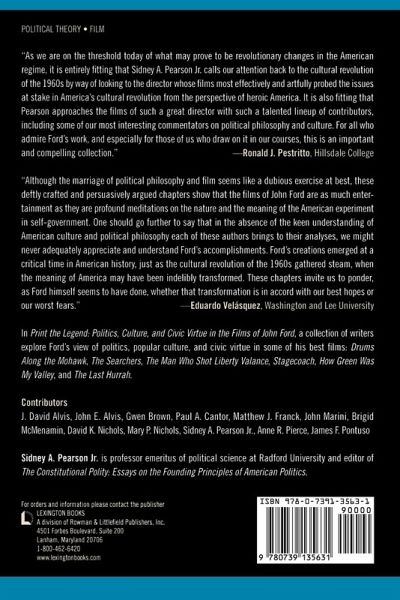 Chapter 1 Introduction Chapter 2 Chapter 1. Defending the West: John Ford and the Creation of the Epic Western Chapter 3 Chapter 2. The Blessings of Civilization: John Ford's Stagecoach Chapter 4 Chapter 3. John Ford's Revolutionary Americans: Drums Along the Mohawk Chapter 5 Chapter 4. Modernity and the Destruction of Boundaries: John Ford's The Grapes of Wrath Chapter 6 Chapter 5. On the Threshold of Modernity: John Ford's How Green Was My Valley Chapter 7 Chapter 6. Heroes and Political Communities in John Ford's Westerns: The Role of Wyatt Earp in My Darling Clementine Chapter 8 Chapter 7. The Western and the Western Drama: John Ford's The Searchers and the Oresteia Chapter 9 Chapter 8. Heroic Virtue and the Limits of Democracy in John Ford's The Searchers Chapter 10 Chapter 9. Honor, Duty, and Civic Virtue: John Ford's Mr. Roberts and The Last Hurrah Chapter 11 Why it is Tough to be the Second Toughest Guy in a Tough Town: John Ford's The Man Who Shot Liberty Valance