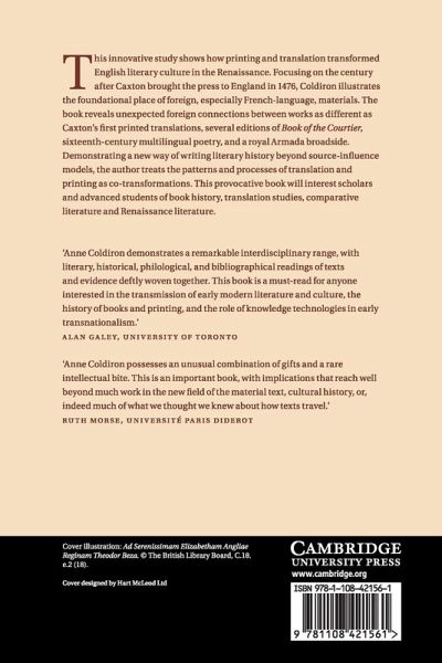 This innovative book reveals how early printing and translation transformed English Renaissance literary culture. Combining insights from both textual and translation studies, ten detailed case studies explore printed translations between Caxton and the late Elizabethan era. This volume appeals to readers interested in early modern English literature, translation, and print culture.