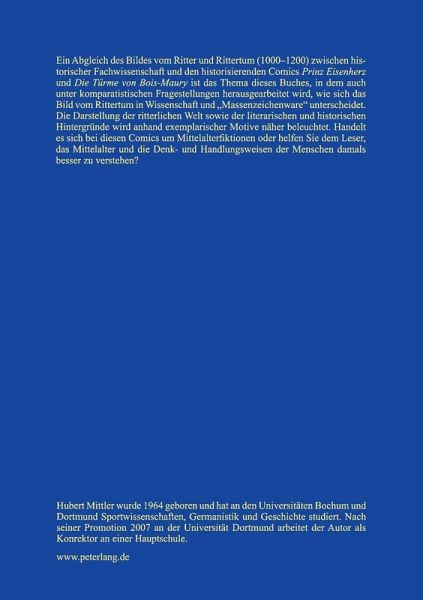 Ein Abgleich des Bildes vom Ritter und Rittertum (1000-1200) zwischen historischer Fachwissenschaft und den historisierenden Comics Prinz Eisenherz und Die Türme von Bois-Maury ist das Thema dieses Buches, in dem auch unter komparatistischen Fragestellungen herausgearbeitet wird, wie sich das Bild vom Rittertum in Wissenschaft und «Massenzeichenware» unterscheidet. Die Darstellung der ritterlichen Welt sowie der literarischen und historischen Hintergründe wird anhand exemplarischer Motive näher beleuchtet. Handelt es sich bei diesen Comics um Mittelalterfiktionen oder helfen Sie dem Leser, das Mittelalter und die Denk- und Handlungsweisen der Menschen damals besser zu verstehen?