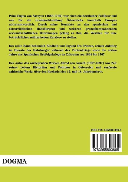 Der erste Band behandelt Kindheit und Jugend des Prinzen, seinen Aufstieg im Dienste der Habsburger während des Türkenkriegs sowie die ersten Jahre des Spanischen Erbfolgekriegs im Zeitraum von 1663 bis 1707.