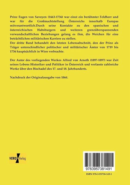 Der dritte Band behandelt den letzten Lebensabschnitt, den der Prinz als Träger unterschiedlicher politischer und militärischer Ämter von 1719 bis 1736 hauptsächlich in Wien verbrachte.