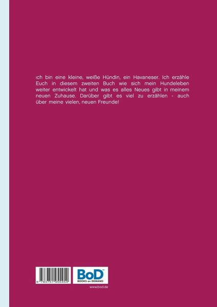 Ich bin eine kleine, weiße Hündin, ein Havaneser. Ich erzähle Euch in diesem zweiten Buch wie sich mein Hundeleben weiter entwickelt hat und was es alles Neues gibt in meinem neuen Zuhause. Darüber gibt es viel zu erzählen - auch über meine vielen, neuen Freunde!