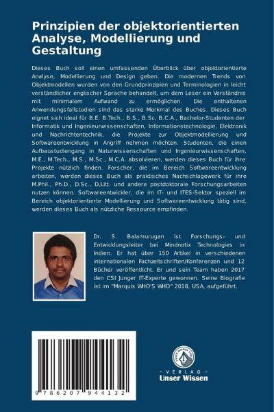 Dieses Buch soll einen umfassenden Überblick über objektorientierte Analyse, Modellierung und Design geben. Die modernen Trends von Objektmodellen wurden von den Grundprinzipien und Terminologien in leicht verständlicher englischer Sprache behandelt, um dem Leser ein Verständnis mit minimalem Aufwand zu ermöglichen. Die enthaltenen Anwendungsfallstudien sind das starke Merkmal des Buches. Dieses Buch eignet sich ideal für B.E. B.Tech., B.S., B.Sc, B.C.A., Bachelor-Studenten der Informatik und Ingenieurwissenschaften, Informationstechnologie, Elektronik und Nachrichtentechnik, die Projekte zur Objektmodellierung und Softwareentwicklung in Angriff nehmen möchten. Studenten, die einen Aufbaustudiengang in Naturwissenschaften und Ingenieurwissenschaften, M.E., M.Tech., M.S., M.Sc., M.C.A. absolvieren, werden dieses Buch für ihre Projekte nützlich finden. Forscher, die im Bereich Softwareentwicklung arbeiten, werden dieses Buch als praktisches Nachschlagewerk für ihre M.Phil., Ph.D., D.Sc., D,Litt. und andere postdoktorale Forschungsarbeiten nutzen können. Softwareentwickler, die im IT- und ITES-Sektor speziell im Bereich objektorientierte Modellierung und Softwareentwicklung tätig sind, werden dieses Buch als nützliche Ressource empfinden.