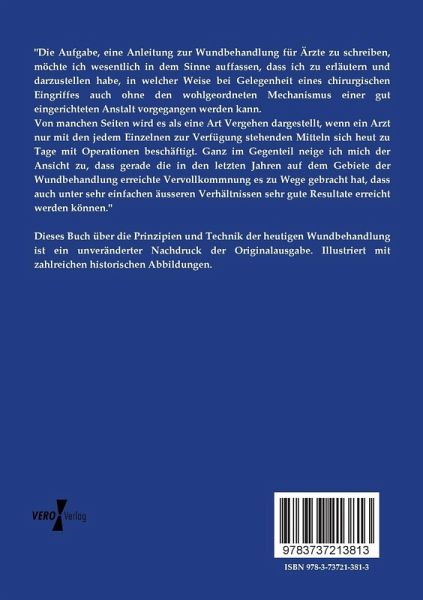 "Die Aufgabe, eine Anleitung zur Wundbehandlung für Ärzte zu schreiben, möchte ich wesentlich in dem Sinne auffassen, dass ich zu erläutern und darzustellen habe, in welcher Weise bei Gelegenheit eines chirurgischen Eingriffes auch ohne den wohlgeordneten Mechanismus einer gut eingerichteten Anstalt vorgegangen werden kann.