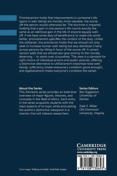 Prioritarianism holds that improvements in someone's life (gains in well-being) are morally more valuable, the worse off the person would otherwise be. The doctrine is impartial, holding that a gain in one person's life counts exactly the same as an identical gain in the life of anyone equally well off.