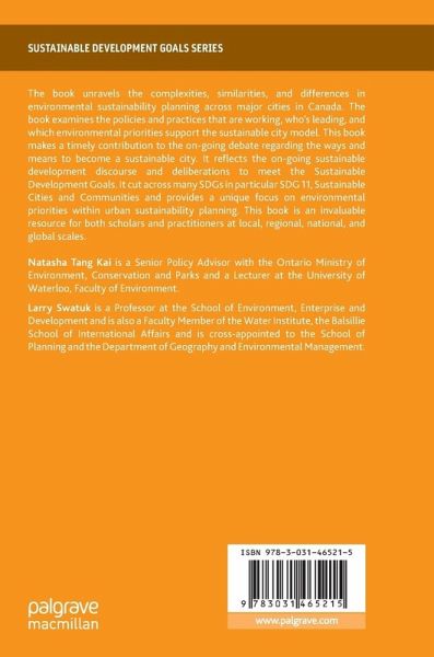The book unravels the complexity, similarities, and differences in environmental sustainability planning across major cities in Canada. The project reflects what's working, who's leading, and which environmental priorities support the sustainable city model. Climate change has exacerbated the impacts of flood, droughts, wildfire and storms, urban centers must account for sustainability to mitigate and adapt to a changing and uncertain landscape. It begins with robust and integrative sustainability plans that prioritize theenvironment.