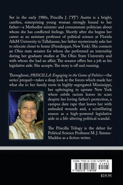 It's time to share stories that haven't been told yet and to introduce new heroines as well. Political enthusiasts will find this thriller convincing. It reveals what happens behind the scenes in the Ohio Senate during the early 1980s, reflecting many of the same dynamics seen in legislative chambers elsewhere, even today. "PRISCILLA Engaging in the Game of Politics" introduces Priscilla J. "PJ" Austin, a bright, carefree, and ambitious young woman who, as a legislative aide, takes us inside the Ohio Senate where she witnesses senators, staff, influential lobbyists, and visitors firsthand, sharing the secrets she uncovers. Only an insider can provide such vivid examples that reveal all the scheming, the importance of leadership and seniority, the challenges faced by minority parties, the influence of sponsorship in legislation, the role of powerful lobbyists, committee activities, voting, and more. How does she manage to do all that? Back in the day, no one paid much attention to a Black woman working in a legislative body, especially one so young, whom everyone took for granted. In fact, Priscilla was often mistaken for a low-level staff member, like a page-someone who runs errands, makes copies, and delivers coffee. Additionally, in the early 1980s, people like Priscilla were considered "invisible," meaning that even though she is a real person, no one notices her, similar to the invisible man in Ralph Ellison's novel. However, Priscilla was on a mission that had little to do with her role in the Ohio Senate, which was simply a means to an end. Earlier, for reasons not yet known, her father asked her to move closer to home in Prendergast, New York. To fulfill this favor for her beloved father, she reaches out to an Ohio state senator she interned with during her graduate studies at The Ohio State University, with whom she also had an affair. The senator offers her a position as his legislative aide, which she accepts. She then leaves her faculty position at Florida A&M University and begins working in the Ohio Senate. And the story takes off from there. The opening scene features Priscilla as a young college professor teaching political science majors who are nearly as old as her at twenty-five. Throughout the story, she reflects on her early life when, as a teenager, she often got into trouble. Clearly, her love for her upbringing in the Snowbelt of western New York is undeniable, as she proudly highlights Christmastime with her family, the contributions of Catherine Harris (a pioneer conductor of the Underground Railroad), the scenic snow-covered landscapes, the birthplace of television legend Lucille Ball, and, most notably, the world-famous Chautauqua Institute. However, not all her life has been perfect. Since she started working in the Ohio Senate, everyone has wondered why she chose to be there, especially after leaving a higher-paying and more prestigious job as a college professor. Priscilla keeps this to herself - not even sharing it with her boss, Ohio state Senator Daniel P. Callahan, until late in the story. Readers also get a firsthand look at Black middle-class family life, which is similar to that of any other middle-class family. Readers might especially appreciate learning about how and why a Black Methodist minister raises his daughter as if she were a son. Additionally, we eventually find out the reason why the good reverend asked his daughter to move closer to home in the first place. Toward the end, as she is no longer invisible, Priscilla surprises us by doing something that, as one reviewer notes, "weathering it like a veteran from New York tabloid wars..." But readers must keep turning pages to find out what happens, which itself is intriguing. No matter your political stance, this story rings true.