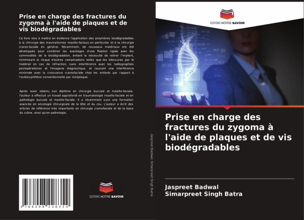 Ce livre vise à mettre en évidence l'application des polymères biodégradables à la chirurgie des traumatismes maxillo-faciaux en particulier et à la chirurgie cranio-faciale en général. Récemment, de nouveaux matériaux ont été développés pour combiner les avantages d'une fixation rigide avec les commodités de la biodégradation, évitant la nécessité de retirer l'implant, minimisant le risque d'autres complications telles que les blessures par le matériel en cas de réfraction, sans interférence avec les radiographies postopératoires et l'imagerie diagnostique, et causant une interférence minimale avec la croissance craniofaciale chez les enfants par rapport à l'ostéosynthèse conventionnelle par miniplaque.
