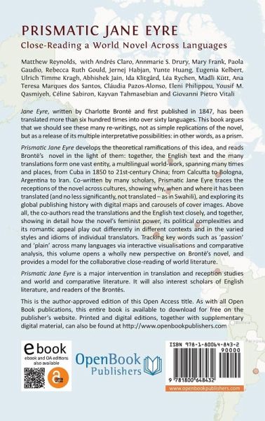 Jane Eyre, written by Charlotte Brontë and first published in 1847, has been translated more than five hundred times into over sixty languages. Prismatic Jane Eyre argues that we should see these many re-writings, not as simple replications of the novel, but as a release of its multiple interpretative possibilities: in other words, as a prism. Prismatic Jane Eyre develops the theoretical ramifications of this idea, and reads Brontë's novel in the light of them: together, the English text and the many translations form one vast entity, a multilingual world-work, spanning many times and places, from Cuba in 1850 to 21st-century China; from Calcutta to Bologna, Argentina to Iran. Co-written by many scholars, Prismatic Jane Eyre traces the receptions of the novel across cultures, showing why, when and where it has been translated (and no less significantly, not translated - as in Swahili), and exploring its global publishing history with digital maps and carousels of cover images. Above all, the co-authors read the translations and the English text closely, and together, showing in detail how the novel's feminist power, its political complexities and its romantic appeal play out differently in different contexts and in the varied styles and idioms of individual translators. Tracking key words such as 'passion' and 'plain' across many languages via interactive visualisations and comparative analysis, Prismatic Jane Eyre opens a wholly new perspective on Brontë's novel, and provides a model for the collaborative close-reading of world literature. Prismatic Jane Eyre is a major intervention in translation and reception studies and world and comparative literature. It will also interest scholars of English literature, and readers of the Brontës.