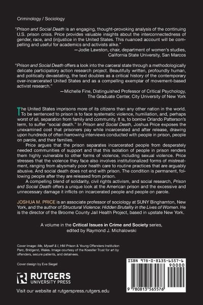 The United States imprisons more of its citizens than any other nation in the world. To be sentenced to prison is to face systematic violence, humiliation, and, perhaps worst of all, separation from family and community. It is, to borrow Orlando Patterson’s term for the utter isolation of slavery, to suffer “social death.” In Prison and Social Death , Joshua Price exposes the unexamined cost that prisoners pay while incarcerated and after release, drawing upon hundreds of often harrowing interviews conducted with people in prison, parolees, and their families. Price argues that the prison separates prisoners from desperately needed communities of support from parents, spouses, and children. Moreover, this isolation of people in prison renders them highly vulnerable to other forms of violence, including sexual violence. Price stresses that the violence they face goes beyond physical abuse by prison guards and it involves institutionalized forms of mistreatment, ranging from abysmally poor health care to routine practices that are arguably abusive, such as pat-downs, cavity searches, and the shackling of pregnant women. And social death does not end with prison. The condition is permanent, following people after they are released from prison. Finding housing, employment, receiving social welfare benefits, and regaining voting rights are all hindered by various legal and other hurdles. The mechanisms of social death, Price shows, are also informal and cultural. Ex-prisoners face numerous forms of distrust and are permanently stigmatized by other citizens around them. A compelling blend of solidarity, civil rights activism, and social research, Prison and Social Death offers a unique look at the American prison and the excessive and unnecessary damage it inflicts on prisoners and parolees.