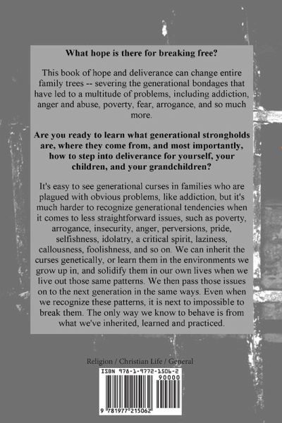 Prison Break is a book of hope and deliverance that can change entire family trees-severing the generational bondage that leads to addiction, anger and abuse, poverty, fear, arrogance, and so much more. Are you ready to learn what generational strongholds are, where they come from, and, most importantly, how to step into deliverance for yourself, your children, and your grandchildren? It's easy to see generational curses in families who are plagued with obvious problems like addiction, but it's much harder to recognize generational tendencies when it comes to less straightforward issues, such as poverty, arrogance, insecurity, anger, pride, selfishness, laziness, foolishness, and so on. We can inherit the curses genetically or learn them from our environment and solidify them in our own lives when we live out those same patterns. We then pass the issues on to the next generation in the same ways. Even when we are able to recognize these patterns, it may feel impossible to break them-but it's not. Let Prison Break show you how!