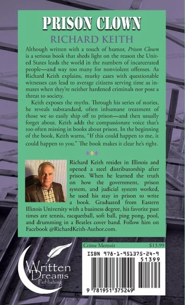 Although written with a touch of humor, Prison Clown is a serious book that sheds light on the reason the United States leads the world in the numbers of incarcerated people-and way too many for nonviolent offenses. As Richard Keith explains, murky cases with questionable witnesses can lead to average citizens serving time as inmates when they're neither hardened criminals nor pose a threat to society. Keith exposes the myth that minimum security Federal prisons are "country clubs." Through his series of stories, he reveals substandard, often inhumane treatment of those we so easily ship off to prison-and then usually forget about. Prison Clown also provides glimpses into an environment unlike any other, a place where the chronically poor and under-educated share their lives with formerly wealthy and privileged professionals. Race and religion matter, sort of, but finding ways to get through the days and scrounge up some decent food is the common denominator for inmates. Keith adds the compassionate voice that's too often missing in books about prison, but that grant little attention to the prisoners themselves. In the beginning of the book, Keith warns, "If this could happen to me, it could happen to you." The book makes it clear he's right.