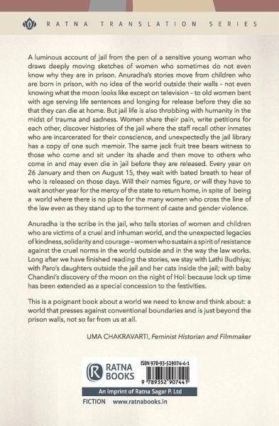 A luminous account of jail from the pen of a sensitive young woman who draws deeply moving sketches of women who sometimes do not even know why they are in prison. Anuradha's stories move from children who are born in prison, with no idea of the world outside their walls - not even knowing what the moon looks like except on television - to old women bent with age serving life sentences and longing for release before they die so that they can die at home. But jail life is also throbbing with humanity in the midst of trauma and sadness. Women share their pain, write petitions for each other, discover histories of the jail where the staff recall other inmates who are incarcerated for their conscience, and unexpectedly the jail library has a copy of one such memoir. The same jack fruit tree bears witness to those who come and sit under its shade and then move to others who come in and may even die in jail before they are released. Every year on 26 January and then on August 15, they wait with bated breath to hear of who is released on those days. Will their names figure, or will they have to wait another year for the mercy of the state to return home, in spite of being a world where there is no place for the many women who cross the line of the law even as they stand up to the torment of caste and gender violence. Anuradha is the scribe in the jail, who tells stories of women and children who are victims of a cruel and inhuman world, and the unexpected legacies of kindness, solidarity and courage - women who sustain a spirit of resistance against the cruel norms in the world outside and in the way the law works. Long after we have finished reading the stories, we stay with Lathi Budhiya; with Paro's daughters outside the jail and her cats inside the jail; with baby Chandini's discovery of the moon on the night of Holi because lock up time has been extended as a special concession to the festivities. This is a poignant book about a world we need to know and think about: a world that presses against conventional boundaries and is just beyond the prison walls, not so far from us at all. UMA CHAKRAVARTI, Feminist Historian and Filmmaker