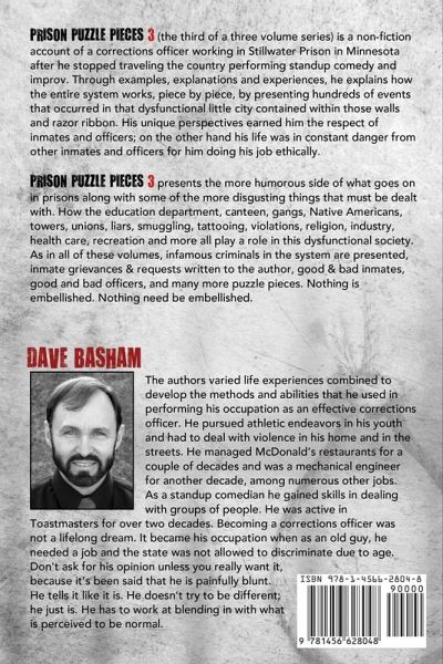 PRISON PUZZLE PIECES 3 (the third of a three volume series) is a non-fiction account of a corrections officer working in Stillwater Prison in Minnesota after he stopped traveling the country performing standup comedy and improv. Through examples, explanations and experiences, he explains how the entire system works, piece by piece, by presenting hundreds of events that occurred in that dysfunctional little city contained within those walls and razor ribbon. His unique perspectives earned him the respect of inmates and officers; on the other hand his life was in constant danger from other inmates and officers for him doing his job ethically. PRISON PUZZLE PIECES 3 presents the more humorous side of what goes on in prisons along with some of the more disgusting things that must be dealt with. How the education department, canteen, gangs, Native Americans, towers, unions, liars, smuggling, tattooing, violations, religion, industry, health care, recreation and more all play a role in this dysfunctional society. As in all of these volumes, infamous criminals in the system are presented, inmate grievances & requests written to the author, good & bad inmates, good and bad officers, and many more puzzle pieces. Nothing is embellished. Nothing need be embellished.