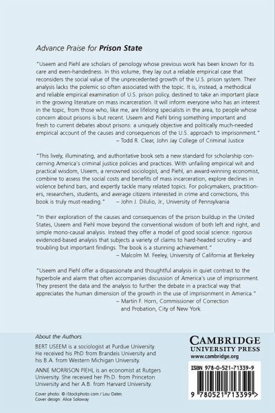 During the past 25 years, the prison population in America shot upward to reach a staggering 1.53 million by 2005. This book takes a broad, critical look at incarceration, the huge social experiment of American society. The authors investigate the causes and consequences of the prison buildup, often challenging previously held notions from scholarly and public discourse. By examining such themes as social discontent, safety and security within prisons, and the impact on crime and on the labour market, Piehl and Useem use evidence to address the inevitable larger question, where should incarceration go next for American society, and where is it likely to go?