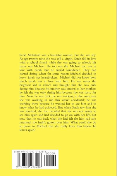 Sarah McIntosh was a beautiful woman, but she was shy. At age twenty nine she was still a virgin. Sarah fell in love with a school friend while she was going to school; his name was Michael. He too was shy. Michael too was in love with Sarah, but he lacked confidence. They had started dating when for some reason Michael decided to leave. Sarah was heartbroken. Michael did not know how much Sarah was in love with him. He was never the brightest kid in school and thought that she was only dating him because his mother was known to her mother; he felt she was only dating him because she was sorry for him. Now he was back; he was working in the same area she was working in and this wasn't accidental; he was working there because he wanted her to see him and to know what he had achieved. But when Sarah saw him she was shocked; she had decided that she was not going to see him again and had decided to go on with her life, but now that he was back what she had felt for him had also returned.