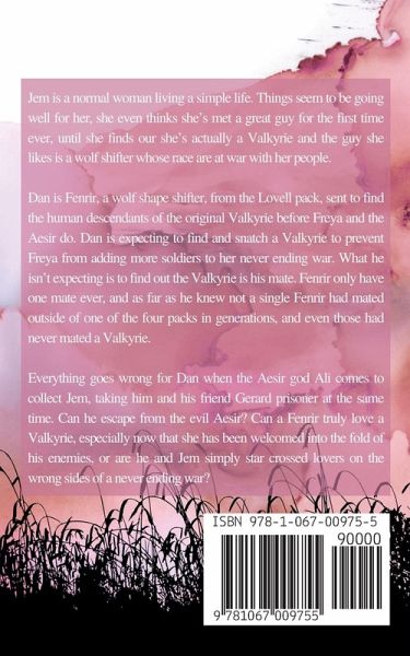 Jem is a normal woman living a simple life. Things seem to be going well for her, she even thinks she's met a great guy for the first time ever, until she finds our she's actually a Valkyrie and the guy she likes is a wolf shifter whose race are at war with her people. Dan is Fenrir, a wolf shape shifter, from the Lovell pack, sent to find the human descendants of the original Valkyrie before Freya and the Aesir do. Dan is expecting to find and snatch a Valkyrie to prevent Freya from adding more soldiers to her never ending war. What he isn't expecting is to find out the Valkyrie is his mate. Fenrir only have one mate ever, and as far as he knew not a single Fenrir had mated outside of one of the four packs in generations, and even those had never mated a Valkyrie. Everything goes wrong for Dan when the Aesir god Ali comes to collect Jem, taking him and his friend Gerard prisoner at the same time. Can he escape from the evil Aesir? Can a Fenrir truly love a Valkyrie, especially now that she has been welcomed into the fold of his enemies, or are he and Jem simply star crossed lovers on the wrong sides of a never ending war?