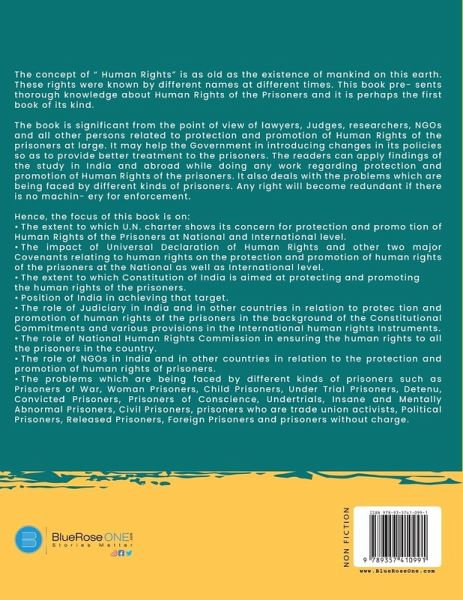 The concept of " Human Rights" is as old as the existence of mankind on this earth. These rights were known by different names at different times. This book pre- sents thorough knowledge about Human Rights of the Prisoners and it is perhaps the first book of its kind.The book is significant from the point of view of lawyers, Judges, researchers, NGOs and all other persons related to protection and promotion of Human Rights of the prisoners at large. It may help the Government in introducing changes in its policies so as to provide better treatment to the prisoners. The readers can apply findings of the study in India and abroad while doing any work regarding protection and promotion of Human Rights of the prisoners. It also deals with the problems which are being faced by different kinds of prisoners. Any right will become redundant if there is no machin- ery for enforcement
