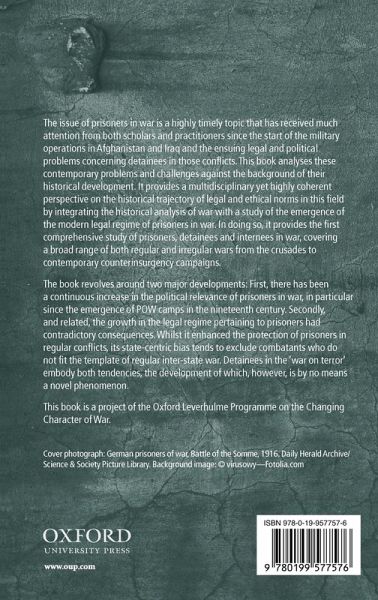 * 1: Sibylle Scheipers: Introduction: Prisoners in War * Part I: The Emergence of Legal and Ethical Standards Before the Second World War * 2: FrÃ(c)dÃ(c)ric MÃ(c)gret: A Cautionary Tale from the Crusades? War and Prisoners in Conditions of Normative Incommensurability * 3: Peter H. Wilson: Prisoners in Early Modern European Warfare * 4: Stephen C. Neff: Prisoners of War in International Law: The Nineteenth Century * 5: Alan Kramer: Prisoners in The First World War * 6: Neville Wylie: The 1929 Prisoners of War Convention and the Building of the Inter-War Prisoner of War Regime * Part II: Prisoners in Regular Conflicts - The Second World War * 7: Bob Moore: The Treatment of Prisoners of War In The Western European Theatre of War 1939-1945 * 8: Rÿdiger Overmans: The Treatment of Prisoners of War In The Eastern European Theatre of Operations 1941-1956 * 9: Philip Towle: Japanese Culture and The Treatment of Prisoners of War In The Asian-Pacific War * Part III: Detainees in Irregular Conflicts * 10: Isabel V. Hull: Prisoners in Colonial Warfare: The Imperial German Example * 11: RaphaÃ'lle Branche: The French in Algeria: Can There Be Prisoners of War In A 'Domestic' Operation? * 12: Huw Bennett: Detention and Interrogation In Northern Ireland 1969-1975 * 13: Bettina Renz: The Status and Treatment of Detainees in Russia's Chechen Campaigns * Part IV: Contemporary Problems and Challenges * 14: Chia Lehnardt: Private Military Personnel as Prisoners Of War * 15: Matthew Happold: Child Prisoners in War * 16: John B. Bellinger III: Legal Issues Related To Armed Conflict with Non-State Groups * 17: Adam Roberts: Detainees: Misfits in Peace And War * 18: David Cole: Outsourcing Terror: Extraordinary Rendition and The Necessity For Extraterritorial Protection of Human Rights * 19: Alia Brahimi: Terrorist Beheadings: Politics and Reciprocity * 20: Sibylle Scheipers: Conclusion: Prisoners and Detainees in Current and Future Military Operations * Index