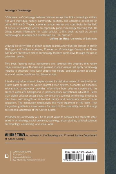 William S. Tregea makes prisoners’ stories come alive with eighty prisoner essays integrated in informational chapters tracing shifts in criminality, the U.S. prison build up, and inner cities. The chapters review criminological theories through case studies of prisoners’ own insights on their lives at the individual, family, and community levels.